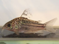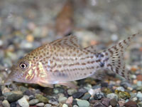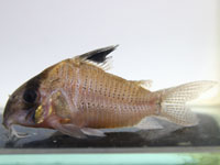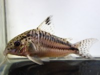 | 飴色の体に細かいスポットと大きめな不明瞭なスポットが入り乱れる不思議なコリドラス。スポットの入り方はバリエーションありです。過去には一度だけ2007年に入荷してますがそれと同等なら13年ぶりということになります。記憶があいまいですが当時は小さなサイズばかりのロットでしたが今回は少し大きめもいます。 | |||||||
