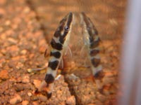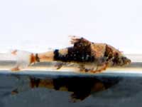 | ワイルド極上個体入荷です。かなり色が派手で背鰭もすごいです。3ペアのみ入荷。 | 金のラインが入る希少なエビです。 |