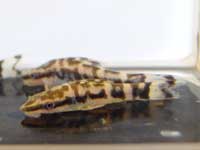 | 今回の個体はビッグです!2匹 | 体の中心を走る太いこげ茶色のラインが特徴。2匹 | これは一体なんでしょう?ごま塩模様と丸い目がとってもキュート。限定1匹、早い者勝ち! | 迫力満点、色もばっちりあがってます。2匹 |
