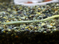 | ロボコップオトシンより乱れ模様で、赤目です。 | ペルー便より入荷。ジャイアントオトシン系のごま塩オトシン。 | 新着オトシン。ネグロ似ですが、体全身黄色です。 | ものすごく細かいメタリックグリーンのドットが全身を覆っています。 |